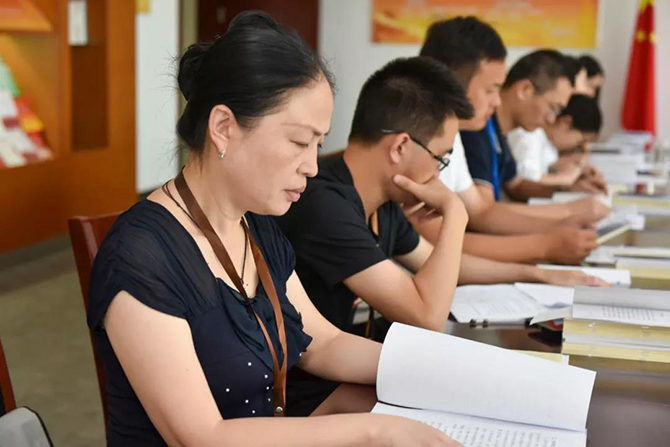 许斌书记带领党支部书记阅览《基层党支部书记抓主题教育责任清单》,主要内容包括“学习教育”的六个方面和“检视整改”的五个方面,逐条阅读,逐一简析,对党支部书记提出了详细全面的工作要求。政史地党支部书记张丽萍老师,党务办曹东均主任等均提出了宝贵的意见和建议,有利于更好地推进主题教育活动。