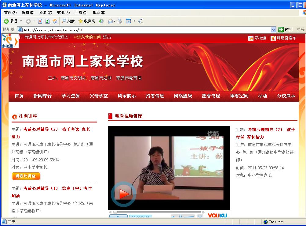 蔡老师的报告视频可登陆南通市网上家长学校(http://www.ntjxt.com/lectures/11)观看。