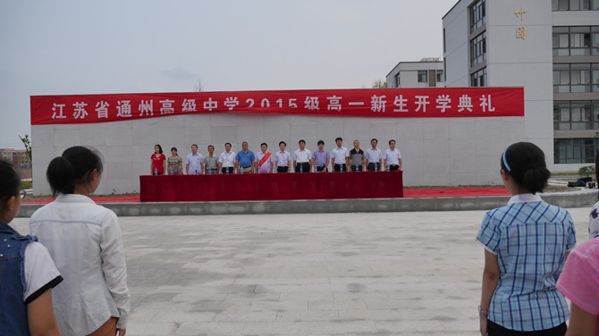 入学典礼在隆重的国歌声中开始。对于高一新生来说,他们刚刚开始一段新的旅程,大幅空白的画卷等着他们尽情书写,来自高一(5)班的唐欢乐同学代表2015级新生做了发言,她回顾了在角逐中考过程中的努力与付出,对高中未来三年充满了期待,她表示“要在各方面全面发展,百花竞放,让多姿多彩的高中生活成为我们生命途中最华丽的点缀。” 同学对高中生活的期待,也正是我们通高教师的希冀。通高教师,乐于奉献、富于创造、满怀激情,教师代表徐孝涛老师用慷慨激昂的演讲为高一新生未来三年的发展指明了方向:“我们来到通高,不仅是为了三年后考入名校,更为了成长为一个卓越的人!”