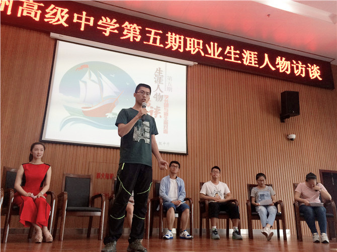 第五期邀请的嘉宾是我校2016届优秀毕业生代表及高二高三学生会、社团联合会的部分学生干部,访谈过程由第二十届学生会文艺部部长高二(10)班耿顾钰涵同学主持。