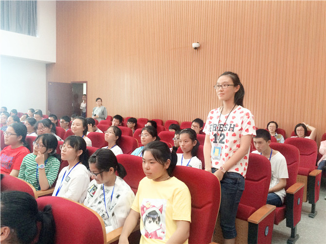 全体高一新生有序进入会场,静候活动开始。首先,高一同学观看了三段由我校优秀毕业生代表录制的视频。视频由现就读于中国科技大学的2015届毕业生时成帅同学,厦门大学的2016届毕业生陈芊芊同学,中科大少年班的2016届毕业生殷正同学精心录制。视频中,三位学长学姐就竞赛,自主招生与高考和高中生活作息等方面分享了自己的经验。三位学长一致认为,竞赛需要建立在自己学有余力的基础上进行,只有这样,竞赛才会成为成功迈入大学的推动力。