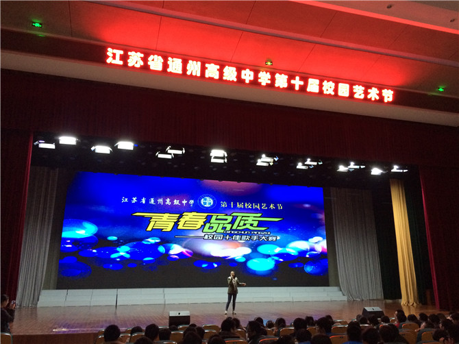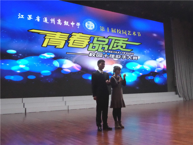 趁热打铁,12月10日(周六)晚6点,此次校园十佳歌手大赛决赛在我校涵礼堂隆重举行。决赛评委有金沙中学音乐老师黄艳老师,育才中学英语老师顾培培老师,通州高中工会主席曹耀忠老师,通州高中历史老师周志军老师,通州高中英语老师任晓洪老师,通州高中音乐老师邱天涵老师和通州高中高二4班学生王磊。我校党委书记曹光明老师和政教处主任管维新老师担任决赛的颁奖嘉宾。整场决赛由高一7班工哲同学和高一17班张纪彧同学主持。