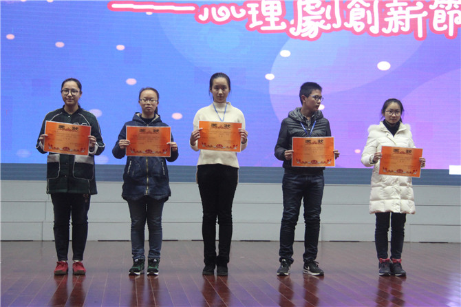 第二届“欢乐通高人”心理剧创新节目大赛上下场分别于12月22日18时10分和23日16时10分在我校涵礼堂成功举行。教务主任赵建华,心理咨询室老师蔡志红、张琳琳,电教中心老师张剑平等共七位评委参加了这次比赛。