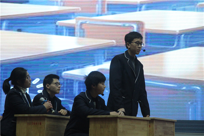 整场比赛完美地展现出同学们的创新精神与感悟生活的能力。在表演时,演员相互配合默契十足,用语言动作传达出剧中人物的心理冲突,极富感染力。台下同学在观看中和台上同喜同忧,不时给予热烈的掌声。张剑平老师评价说,学生能自己写出这样剧本已经是相当不容易,而演员在表演中对于角色的演绎,更是出乎意料的精彩。