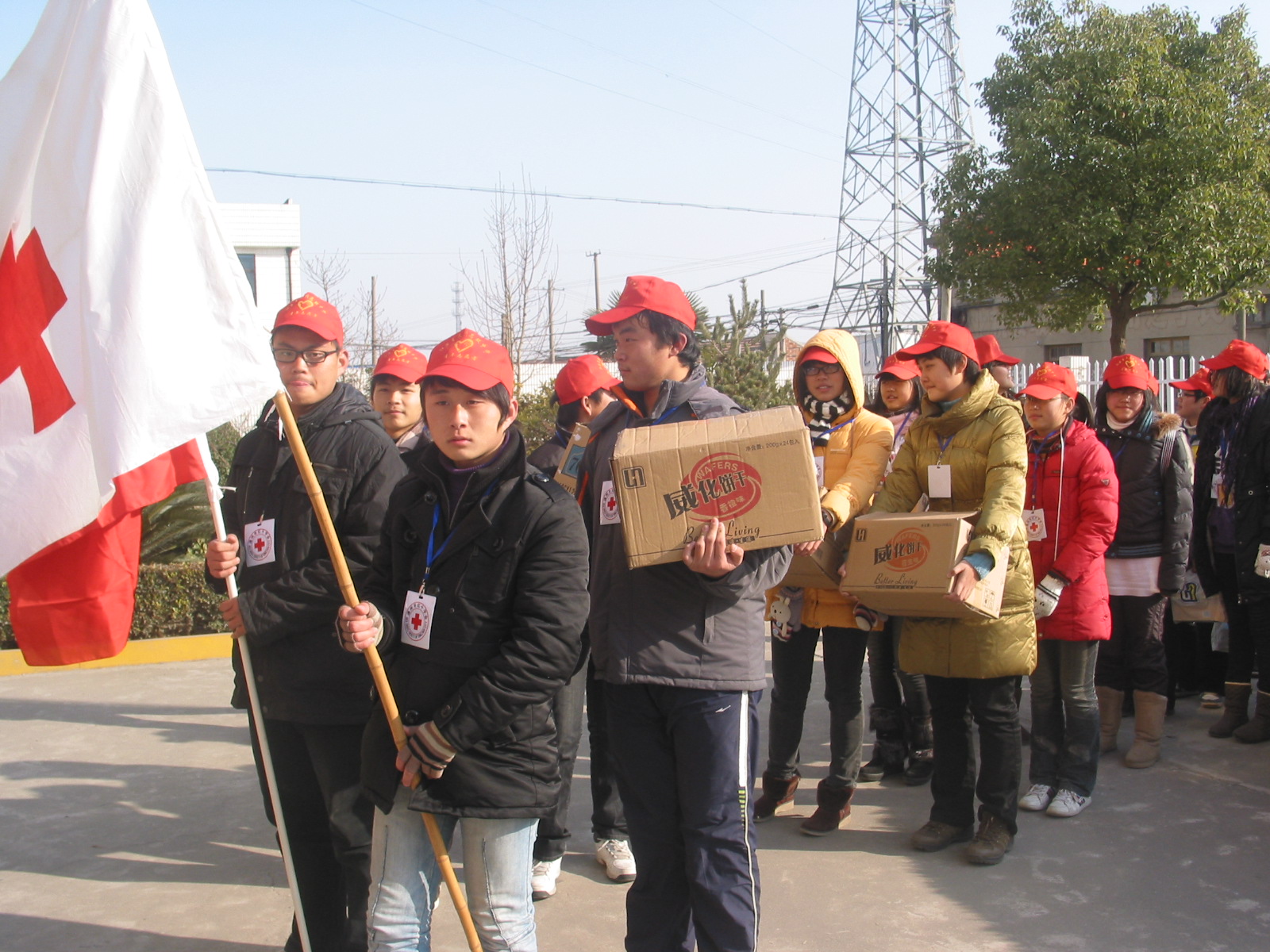 下午二时许,金沙镇农村社会福利中心大院内一下子“涌进”了不少“客人”。他们中有通州高级中学政教处主任、红十字会副会长张圣兵,有政教处副主任管维新,有红十字会秘书长蔡志红,有学生会青年志愿者服务部长马尧等20多位红十字会员。
