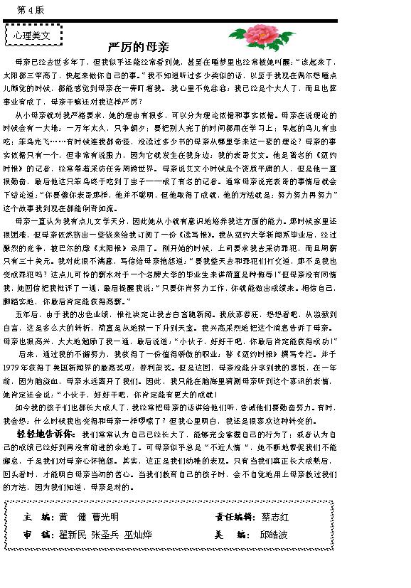 心理健康小报2008-2009学年度第三期第四版