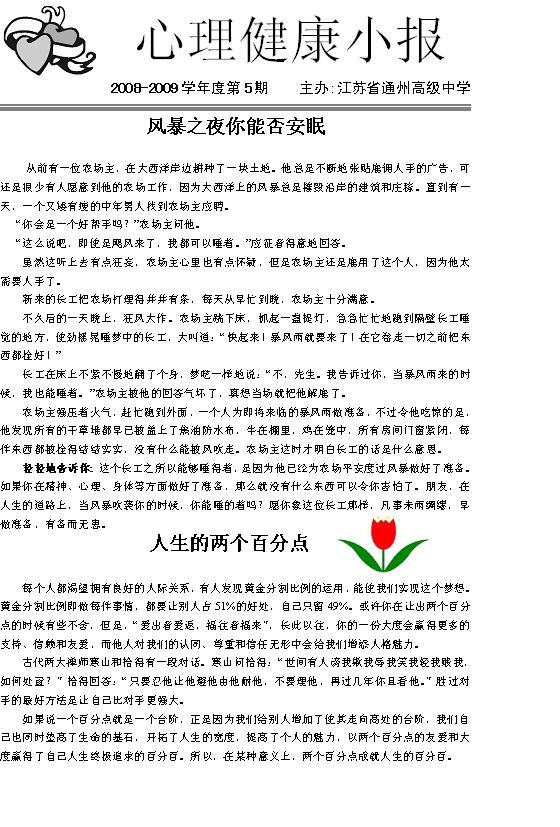 心理健康小报2008-2009学年度第五期第一版