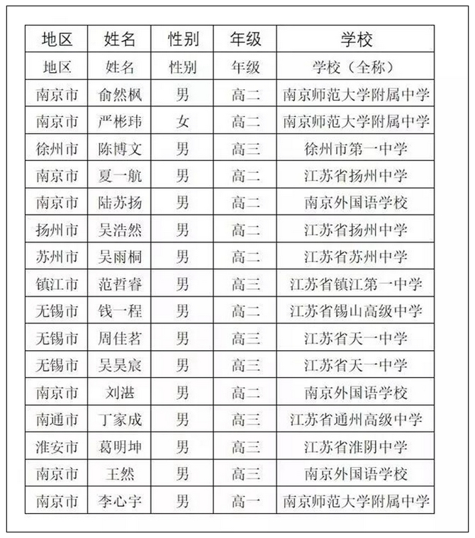 在2018年全国高中数学联赛(江苏赛区)中,开云手机在线登入2019届高三6班丁家成同学以优异成绩入选省队(指导老师:朱丽强),高二6班吴天逸同学获得国一(指导老师:王新星)。