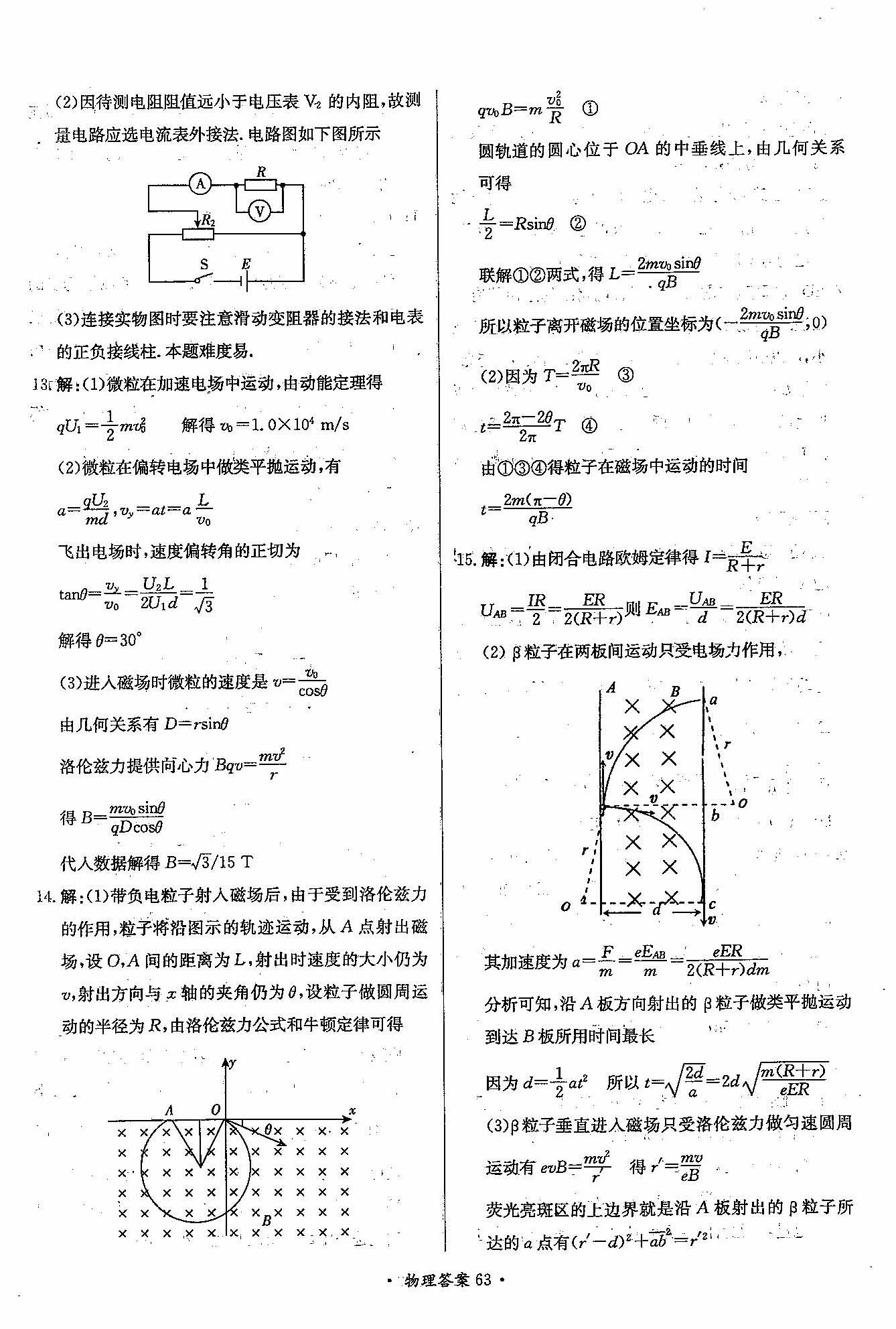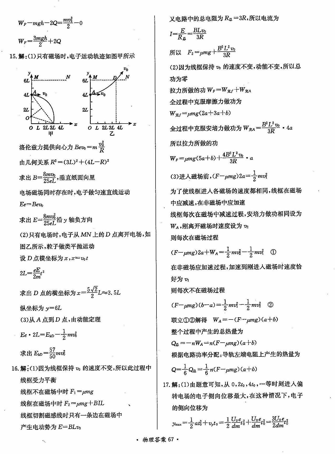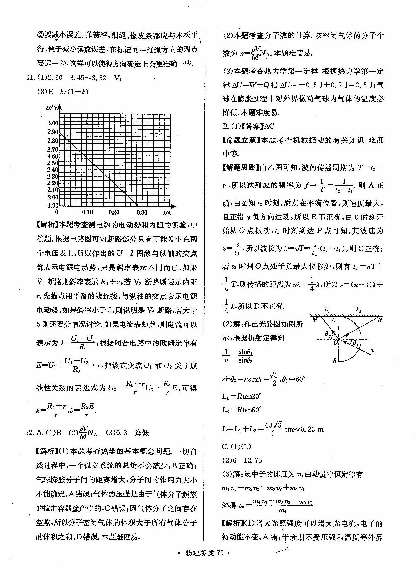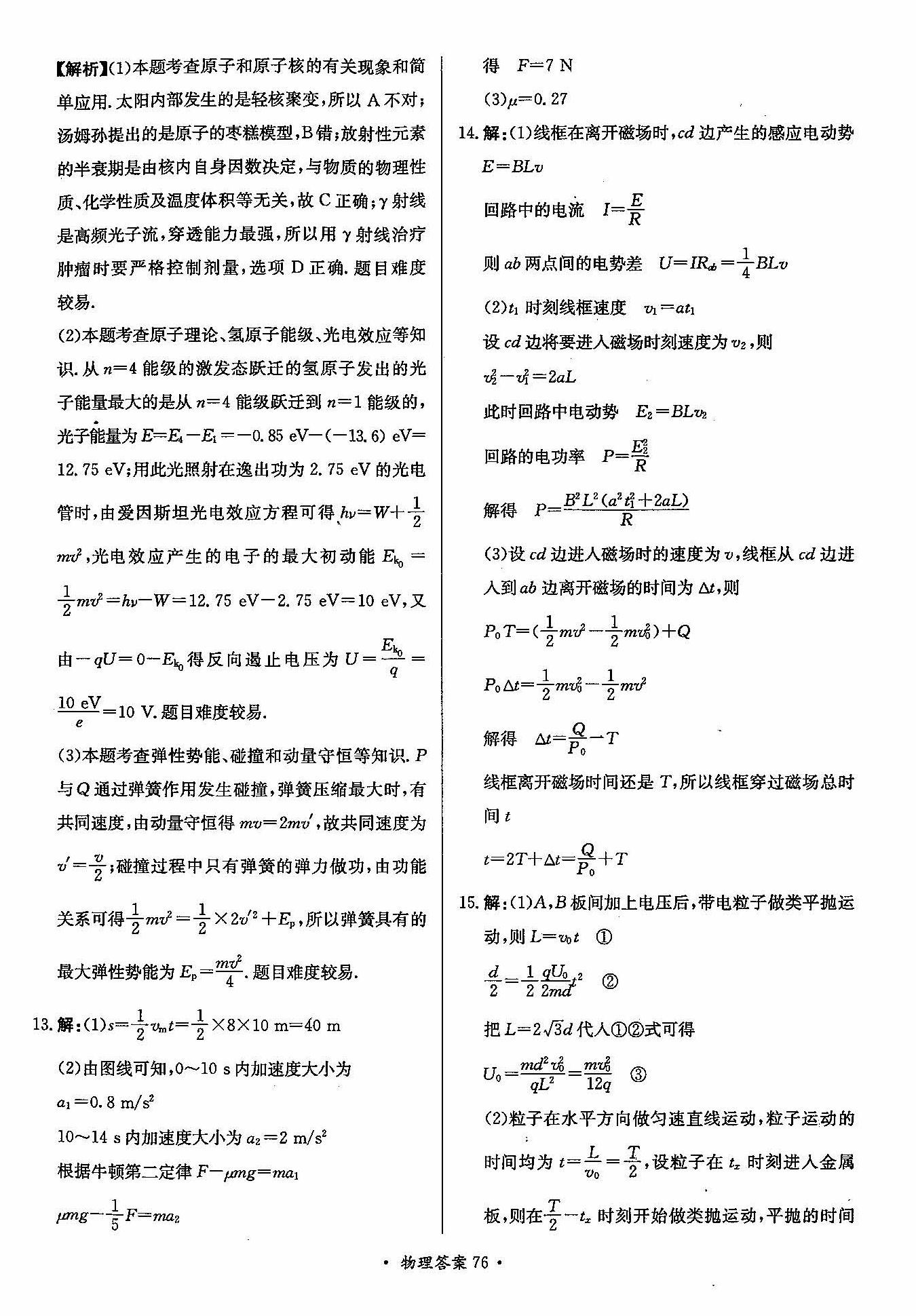 高三年级物理寒假作业答案