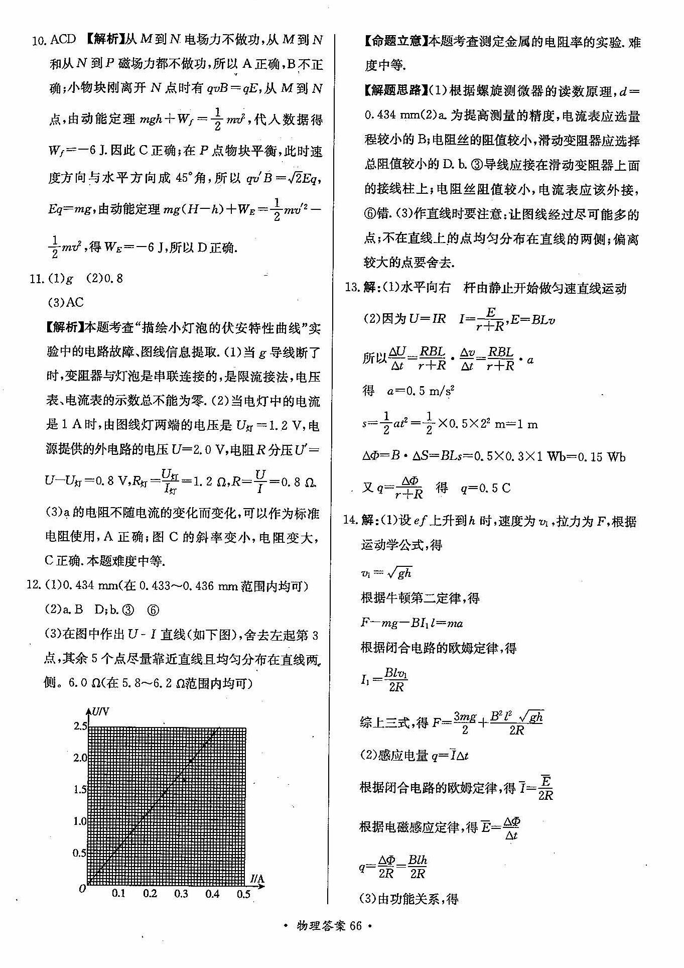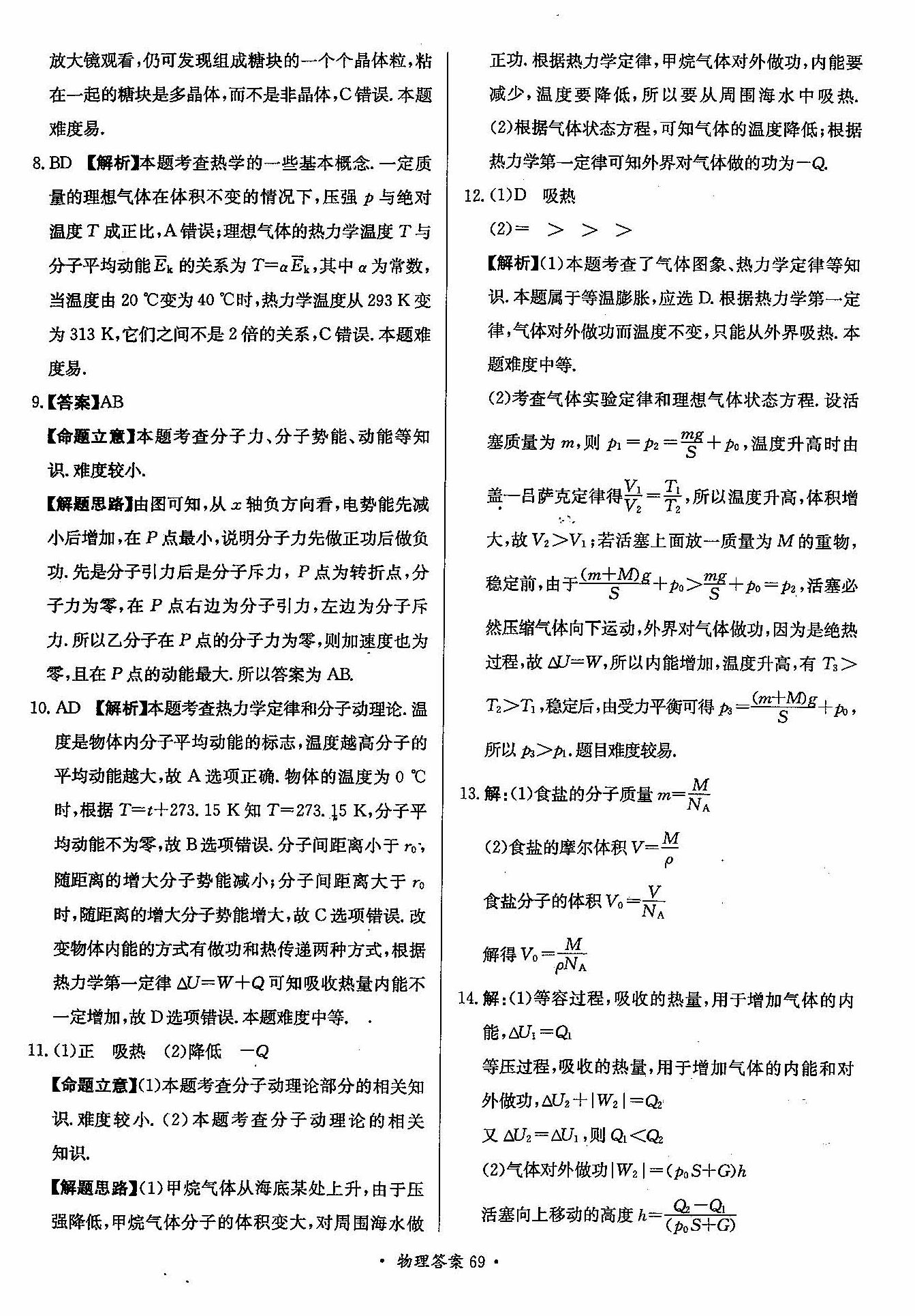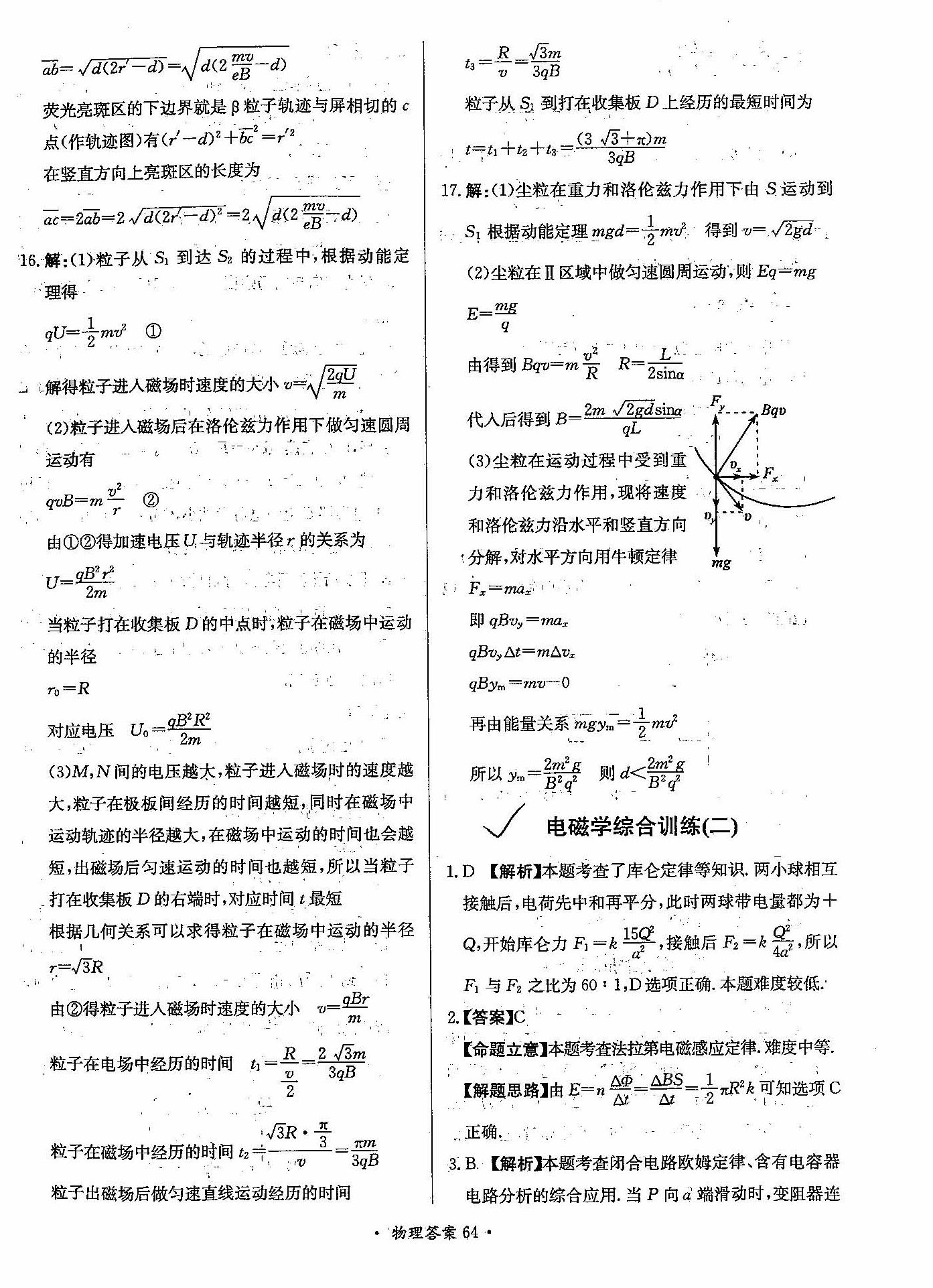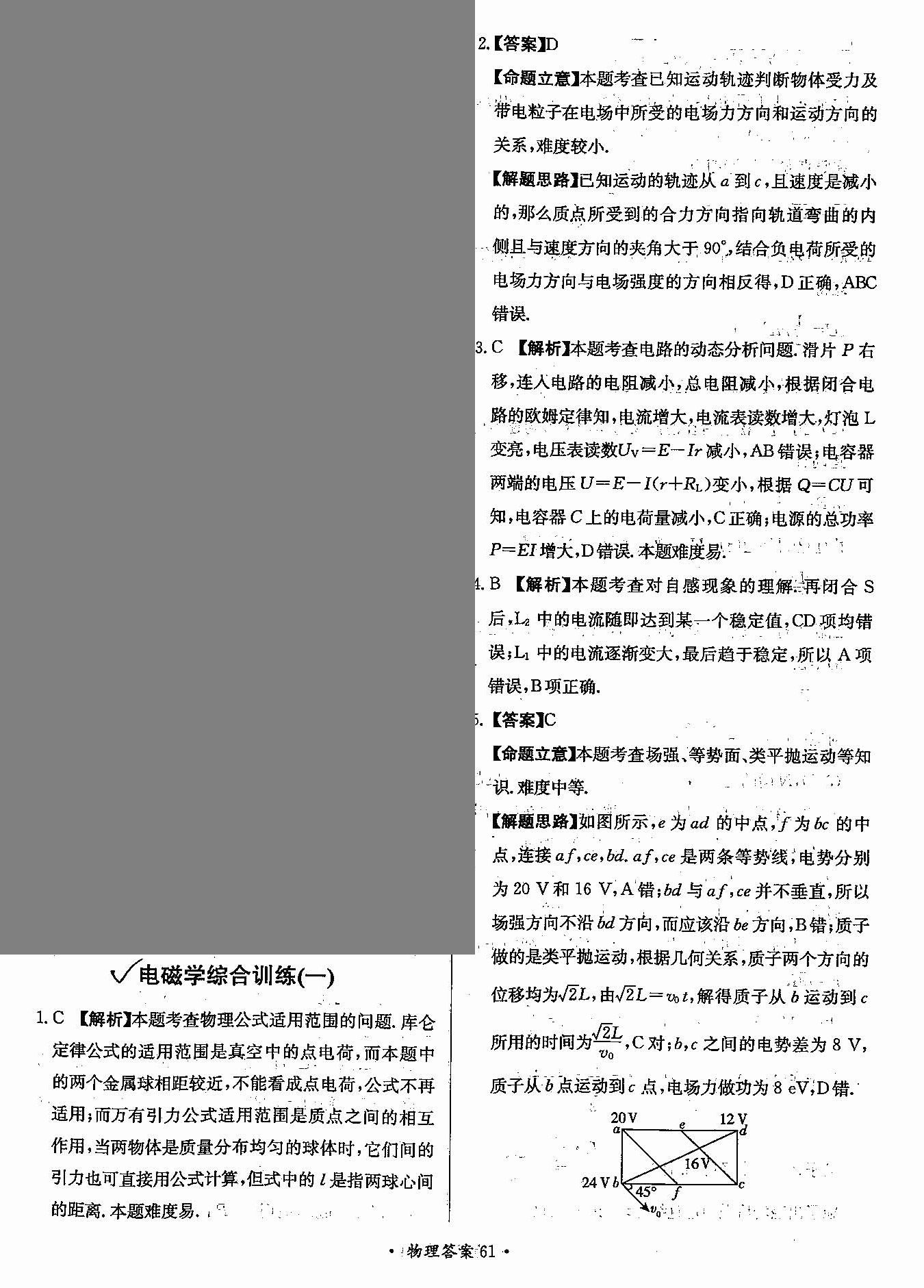 高三年级物理寒假作业答案