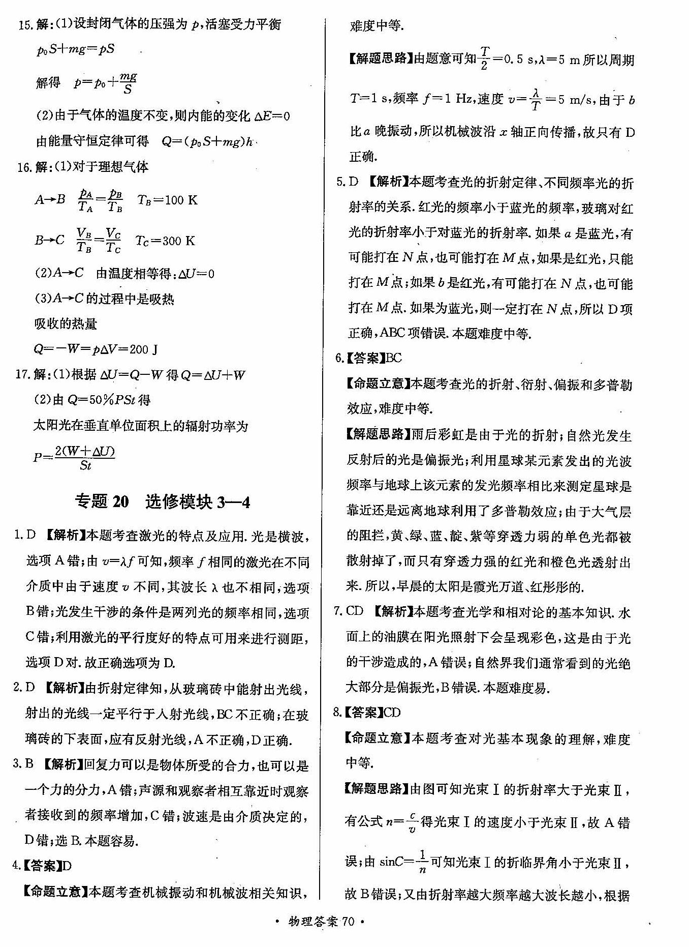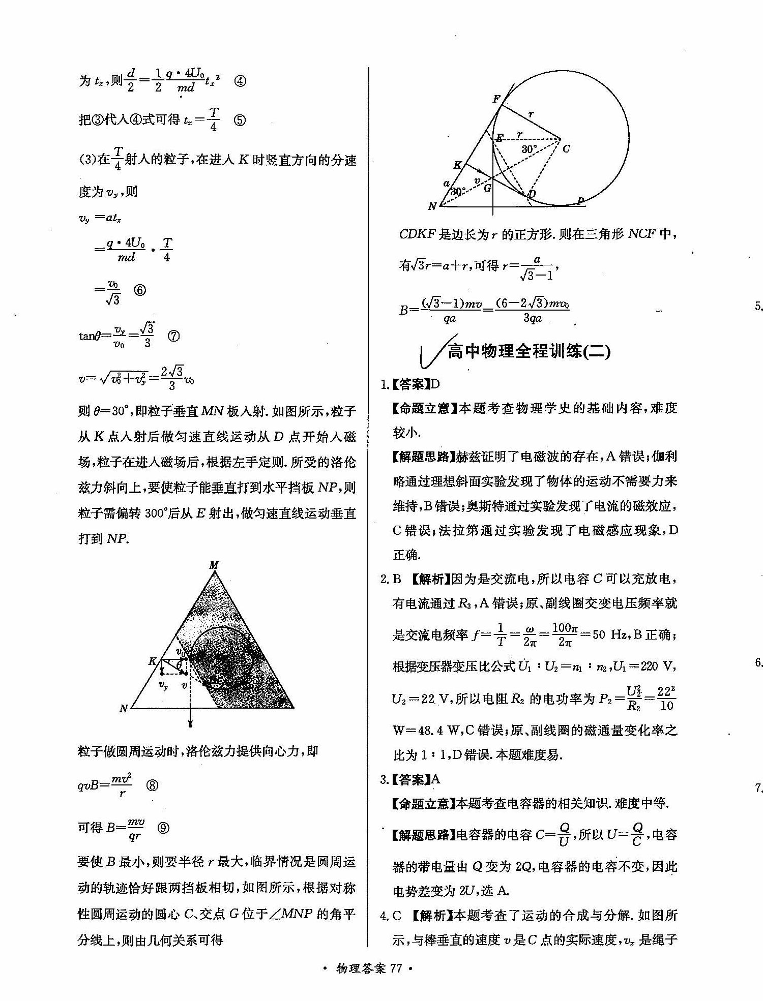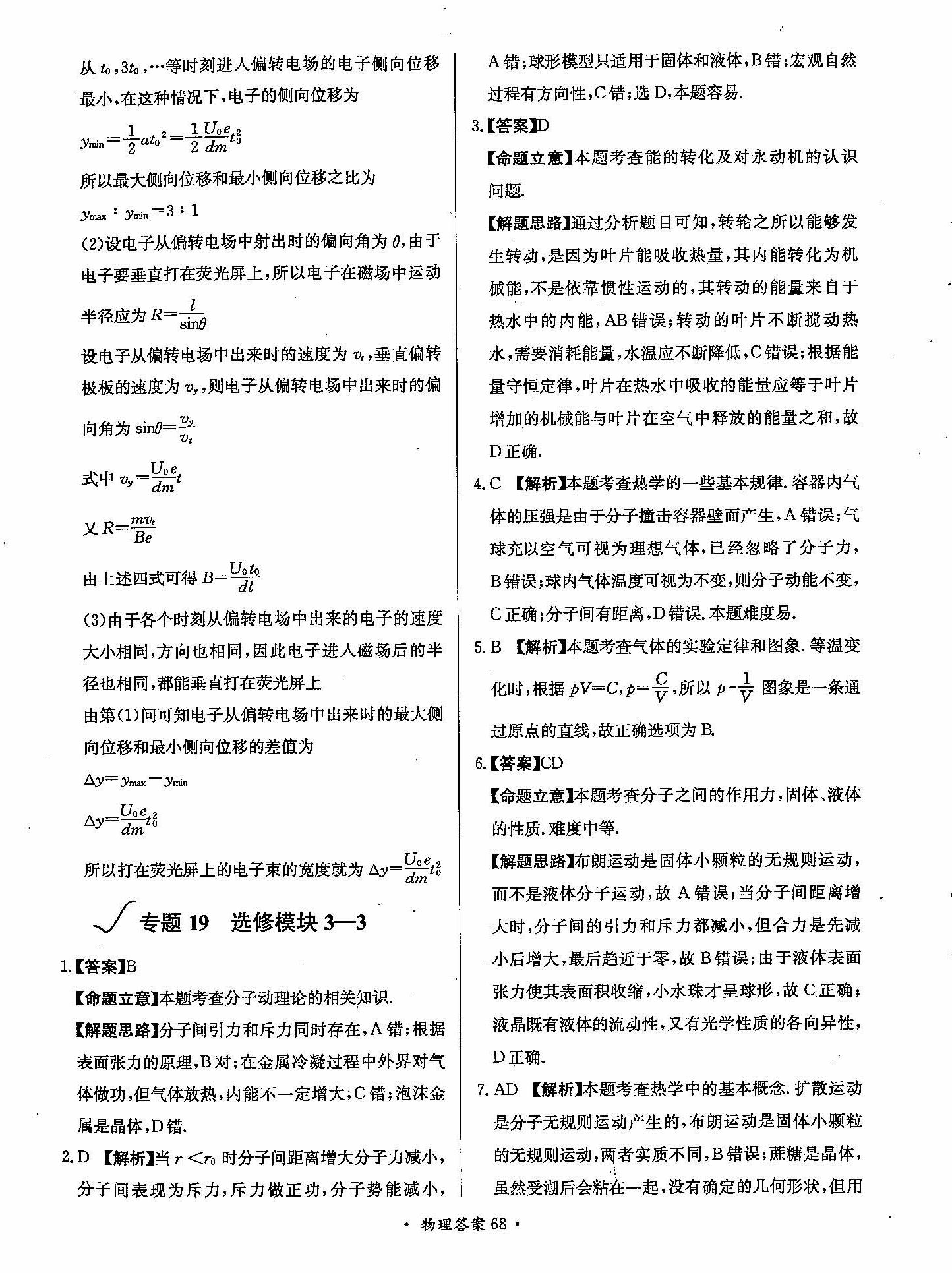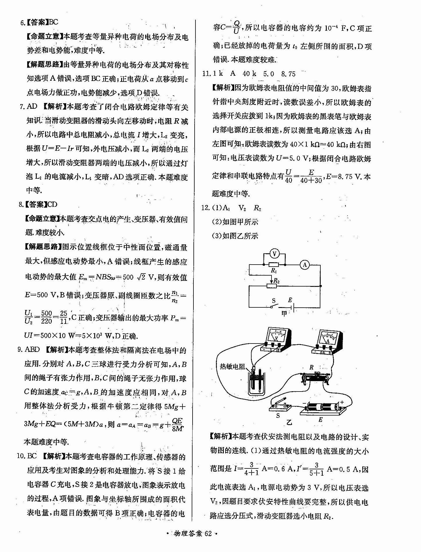 高三年级物理寒假作业答案