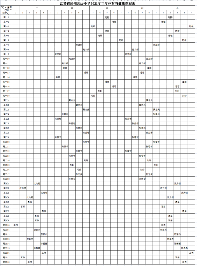 公示四:开云手机在线登入2021年度体育与健康课程表