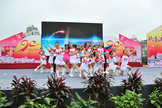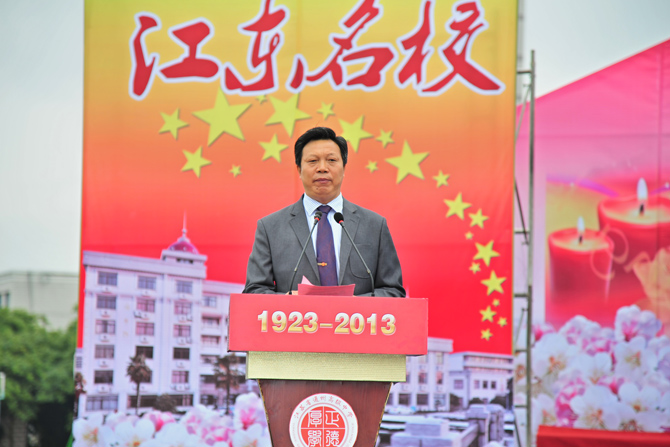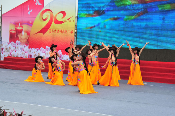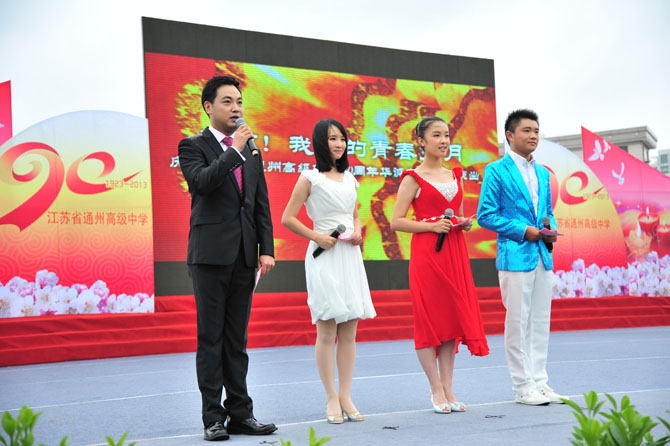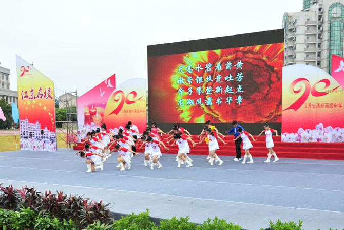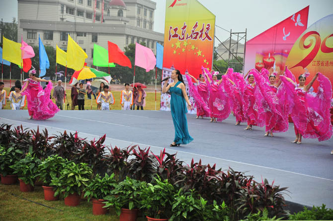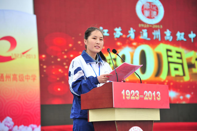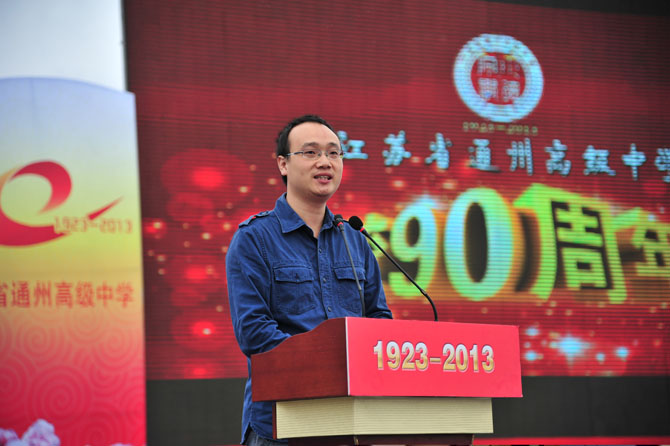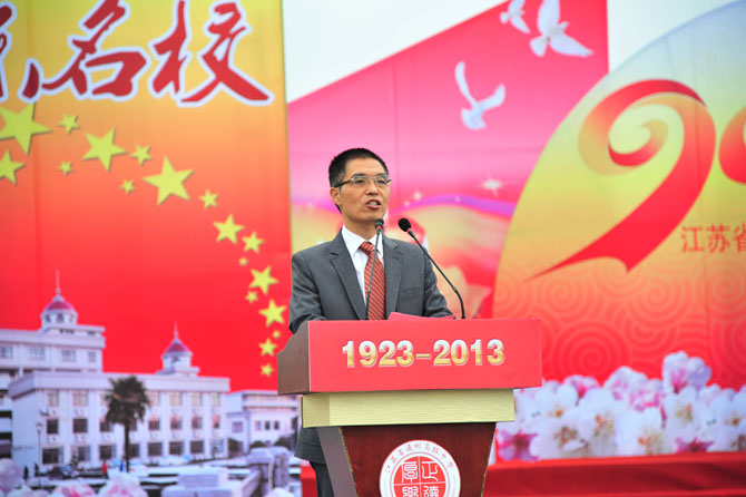 9点30分,庆祝活动正式开始。大会由党委书记曹光明同志主持。校长季仲平同志向领导、校友致辞,回顾了学校的发展历程,介绍了学校的办学业绩,阐述了学校的教育梦想。校友代表、九七届校友、南京大学博士生导师曹毅教授,教师代表、全国模范教师张淳老师,学生代表、高三(18)班张洁同学分别作了发言。最后,与会人员观看了由在校师生和部分校友表演的九十校庆专题文艺演出。