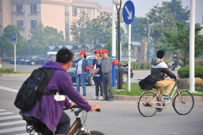 从5月份开始,学校领导、党员和年轻教师志愿者参与交通维护。