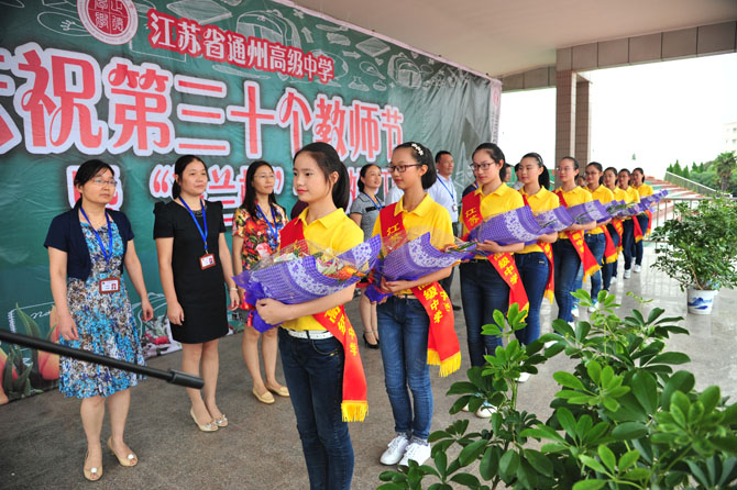 在9月9日上午区委区政府领导到校慰问季仲平校长和生物教研组,下午顾建华等优秀教师代表参加区教师节庆祝大会后,学校相继开展了一系列庆祝第三十个教师节活动。