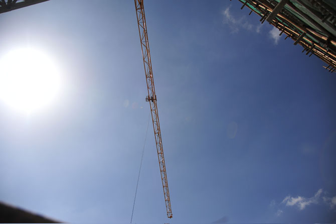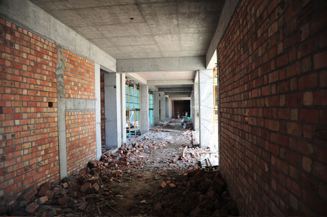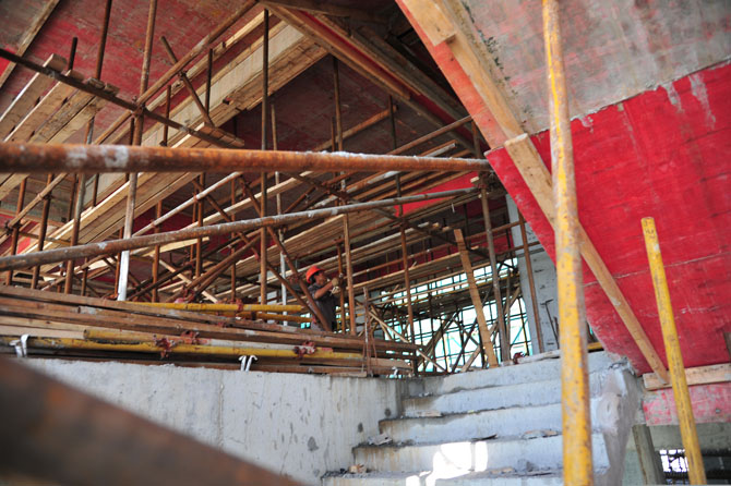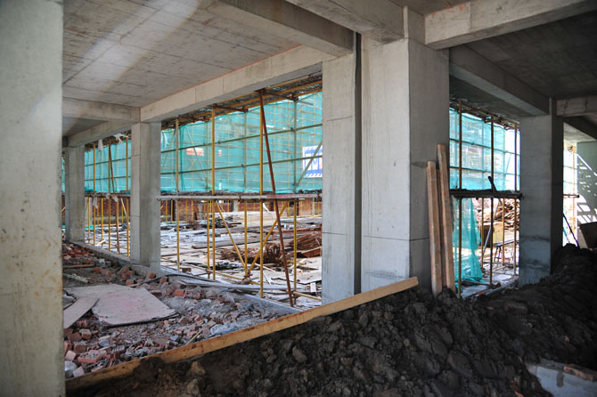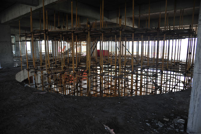 新校区建设掠影二 时间:2014-10-07 作者:翟新民 浏览:次 分享到: 本次照片拍摄于2014年10月4日下午。 办公楼主楼,共10层,已经到了8层 内部非常大气 又浇筑一层 内部镂空造型 内部天井 办公楼裙楼已经封顶 教学楼 看到标牌了吗? 内部过道 教学楼间空间 教学楼已经封顶 从办公楼主楼西侧往南看 从办公楼主楼往南看 宿舍楼 从南往北看宿舍楼 脚手架 塔吊臂凌空而过 南面毗邻的文山初中和金乐小学,一河之隔 校门外的界河 校门口的过道 打印正文 关闭本页 扫一扫关注通州高级中学