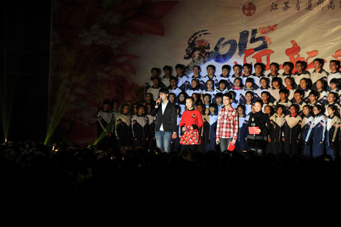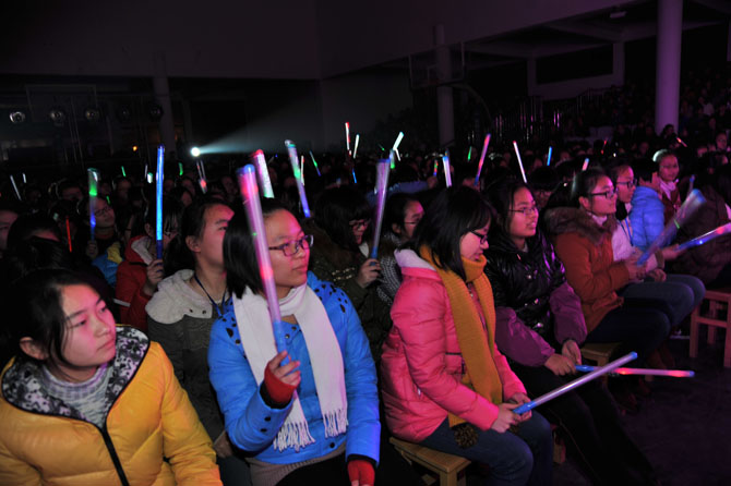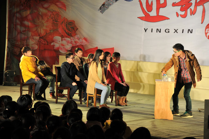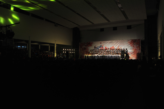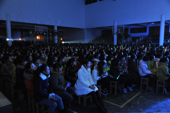 2014年12月30日晚,我校在体育馆举行2015年迎新晚会,学生及教职工演员精湛的表演给学生带来无限的快乐。
