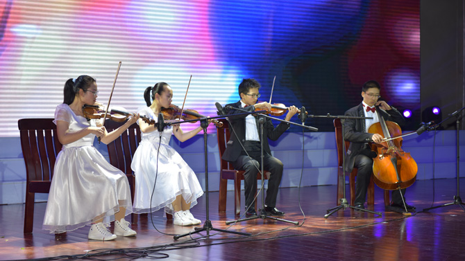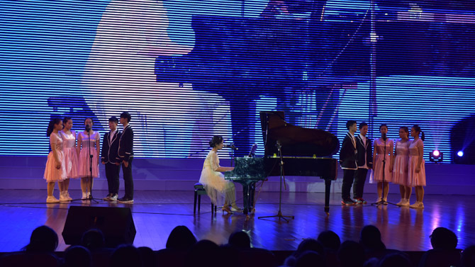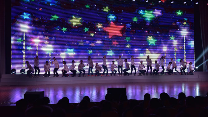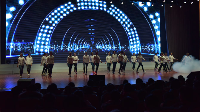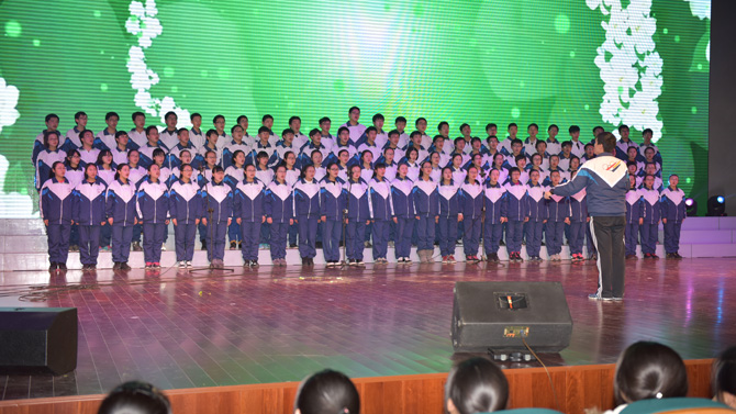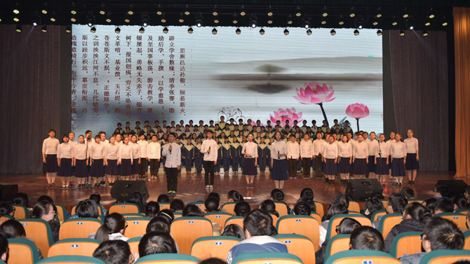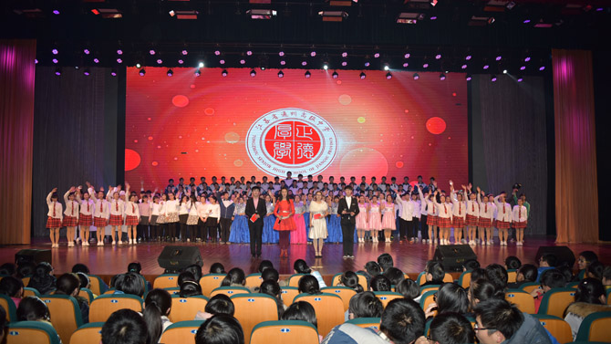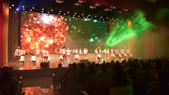 晚会由十一个精选节目组成,节目形式丰富多样,配以LED屏幕、先进的灯光音响等设备,舞台效果美妙绝伦;师生同台表演,台上精彩纷呈,台下掌声不断,晚会氛围欢乐祥和、热烈融洽。整个晚会在青春激昂的《校赋·校歌》合唱声中圆满结束!