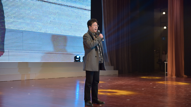 晚会演出在欢快的歌舞《新年快乐》中拉开序幕。季仲平校长首先祝辞,他代表校党委、校长室向全体来宾及全校师生员工致以新年问候。致辞中,季校长简要回顾了2015年学校取得成绩,对2016年做出了热切展望。他强调,本次迎新晚会在新校区顺利搬迁的背景下举行,意义重大,既是学校素质教育的成果汇聚,更是新校区师生积极昂扬精神面貌的集中展示;既是学校文化建设的魅力折射,更是全体通高人追逐理想、胸怀中国梦的自信流露。借助晚会,季仲平校长着重从历史延续、文化传承、精神弘扬的高度,肯定了搬迁以来全体师生员工的工作和学习表现,他指出“2015年我们欣慰的汗水,又将是后来者回眸凝视的浓墨重彩和掘取不断的精神源点”!