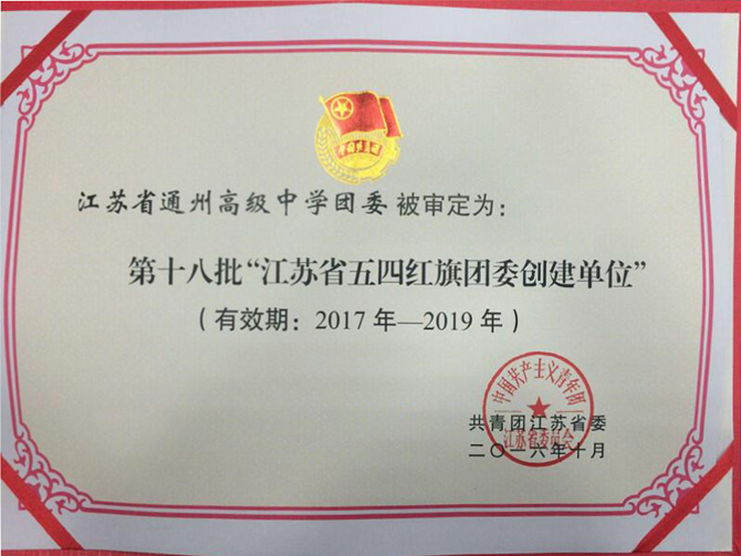 “五四红旗团委”是上级团组织授予基层团委的综合性最高荣誉,成为“江苏省五四红旗团委创建单位”标志着我校共青团工作已经达到了团省委“班子建设好、主题活动好、支部建设好、活动阵地好”的考核标准。