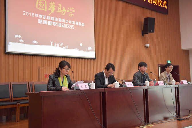 10月25日上午,通州区2016年度“圆梦助学”凯璞庭衡麓青少年发展基金慈善助学金发放仪式,在我校九楼会议室举行。凯璞庭集团副总裁陈霞女士、区教育局刘新副局长、秦志强副校长到会并致辞。凯璞庭集团部分员工、区其他学校师生代表、学校政教处和红会负责人参加了活动。