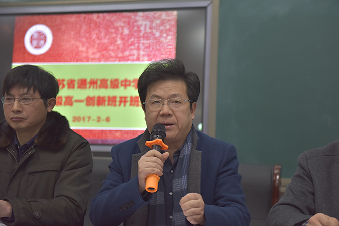 随后,季仲平校长作了重要讲话,介绍了创新班的办学目标和教育措施,并对新同学提出了四点建议。他指出,立足于学生的全面发展,突出综合素养和个性养成,学校着力通过创新育人模式培养志向高远、知识广博、身心健康、富有创新精神和实践能力的精英人才;尤其指出,创新班的同学不仅要在学业上体现“新高”,更要在人格成长、核心素养上体现“拔尖”,应该自觉成为“会做人、会求知、会办事、会生活”的新时代领军者。