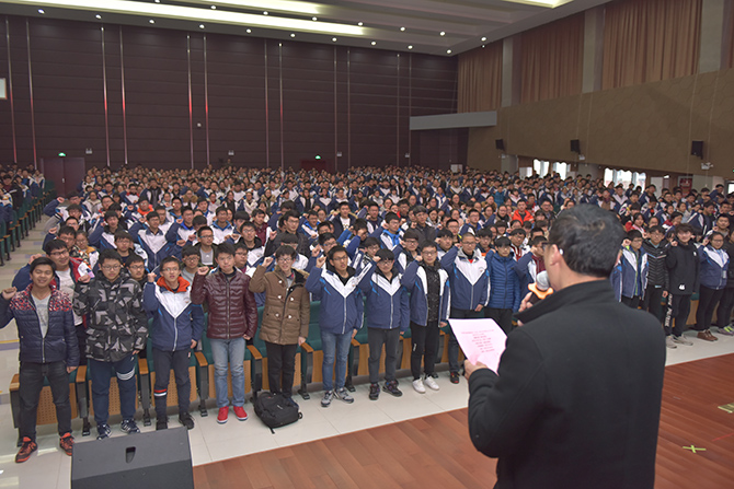 大会首先由教务处赵建华主任介绍了往届学测成绩,强调了学测考试对于高考的影响,对复习时间作了具体部署。随后,高三年级“4A”学生代表给学弟学妹们传授了学测考试经验,鼓励大家在冲刺阶段更加勤奋更加细致。