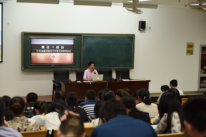 季仲平校长发表了以“得其大者可以兼其小”为主题的讲话,与大家交流青年教师的发展方向。季校长说,作为高层次学校,我们不能只通过学生成绩来证明教学,还要通过教师发展来彰显教育,建设教师发展型学校是我们的应然之举。他对与会青年教师提出了五点要求:拥抱事业,心向境界;怀揣师爱,温暖彼此;秉持操守,德化生命;丰富素养,提升格调;胸怀大局,成就校我。他希望全体青年教师成为学校教学的骨干中坚,成为学校办学的中流砥柱,成为学校发展的可靠继承者。