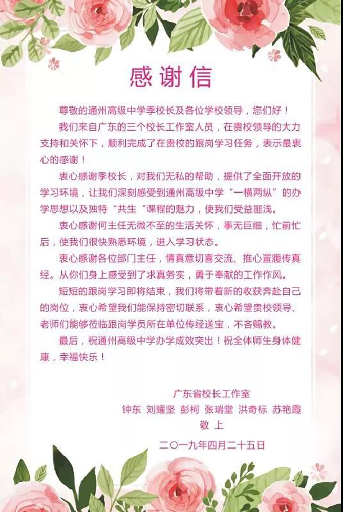 六位校长到校时,正值省前瞻性项目专家组在校调研,他们一同参观了学校“以审美为价值取向的共生课程”建设, 对圆梦圃、涵礼堂、“通高赋”文化墙、“书山学海”雕塑群、白鹭书吧、学生发展课程基地、校史馆、审美课程指导老师工作坊等“审美物型课程”欣赏不已。下午,六位跟岗校长参加了高三文理创新班教师会议,参与了拔尖生培养研讨。作为跟岗交流,六位校长将驻校学习三天时间,学校为他们安排了与各部门负责人交流、参加行政办公会等交流活动。同时,学校也将通过交流,学习借鉴六位校长的管理经验和外省市的教改实践,取长补短完善自我。