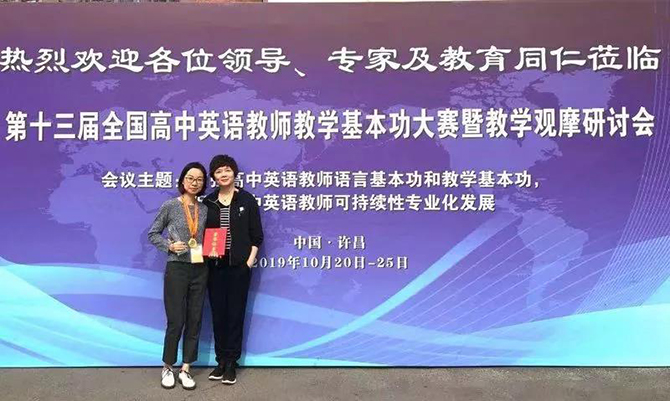 今天,从第十三届全国高中英语教师教学基本功大赛组委会传来喜讯,我校英语教研组青年教师张晓娟荣获课堂教学评比全国一等奖!