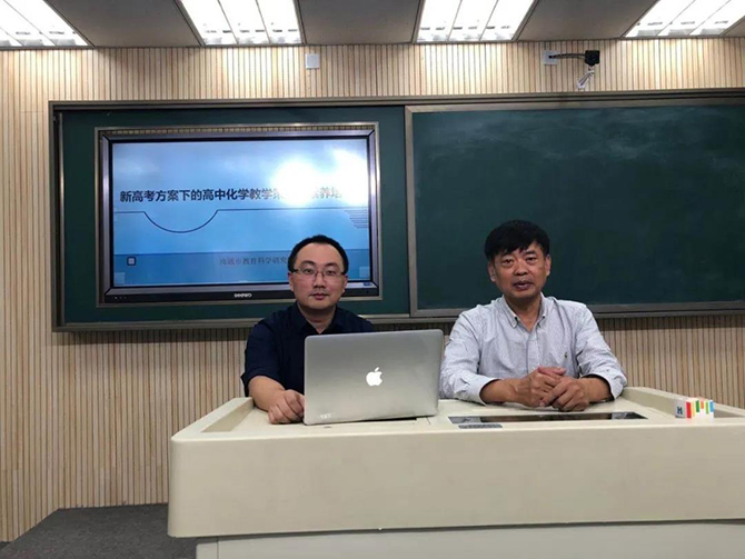 下午,南通市教育科学研究院王曙华老师开设了“新高考方案下的高中化学教学策略和素养培养”专题讲座。他指出,新高考的到来,必然要求课程体系重建,围绕“立德树人”这一宗旨,我们的课程标准自然转向对学科核心素养的要求,我们的教学策略更要适应学生的选择,满足学生的个体发展需求。他从新高考方案改革信息的相关梳理、新考试要求和考试内容分析及新教材特点和教学注意点三个方面,讲述了教学策略的研究和核心素养的提高路径。