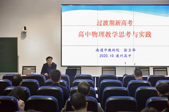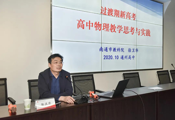 为落实“新课程、新教材”建设要求,做好“新高考”准备,10月21日我校邀请到南通市教育科学研究院徐卫华副院长来校专题讲座,讲座由张圣兵副校长主持,物理教研组全体教师参加了活动。