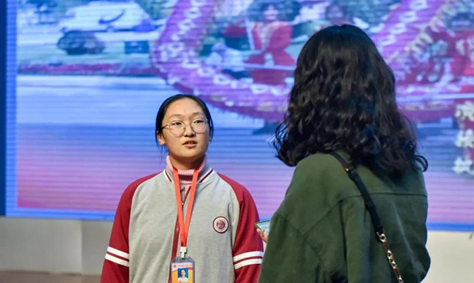 开幕式演出结束后,高一(5)班周篁、单宇灏同学直呼“太震撼了”,高雅艺术不但走进学校,也走进了我们学生的心。
