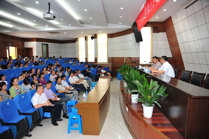 8月26日下午,南通市人民政府督导室主任秦建荣先生来我校作了“追求有效教学,打造高效课堂”的专题报告。秦主任从2012年高考情况切入高效课堂,以确凿的数据和翔实的案例充分说明,高效课堂是提升教学质量的有力保证。秦主任对“实施有效教学、构建高效课堂”的必要性及其策略与途径做了详细的阐述,并用视察中亲身经历的鲜明事例加以佐证。他指出,要打造高效课堂,首先要规范课堂,然后是有效课堂,最后才是高效课堂;高效课堂中的教师应当具备强烈的责任心与使命感,必须掌握科学的教育教学思想与方法。秦主任还勉励我校老师潜心进行有效教学的研究与实践,打造具有我校特色的高效课堂,创造新的辉煌。