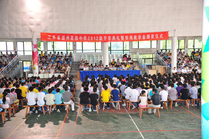 8月31日下午,2012级高一新生开学典礼暨华伟奖学金颁奖仪式在体育馆举行。