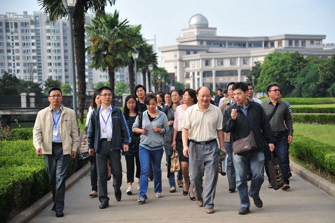 9月17日,由南通大学承办的江苏省高中英语骨干教师培训班全体老师来我校考察、观摩。来自全省各地的80多位高中英语教学骨干教师参加了本次活动。通州中学林红梅老师和葛祖华老师为培训班开设观摩课。林红梅老师开设了高三语法课,葛祖华老师开设了高二阅读课。听课老师对两堂课给予了高度评价,认为二位老师语言功底深厚,教学设计理念新、立意高,学生的思维能力得到充分地锻炼,课堂教学效率高、效益大、效果好。